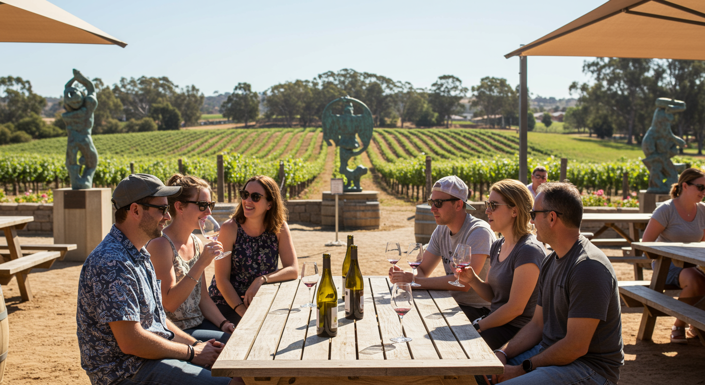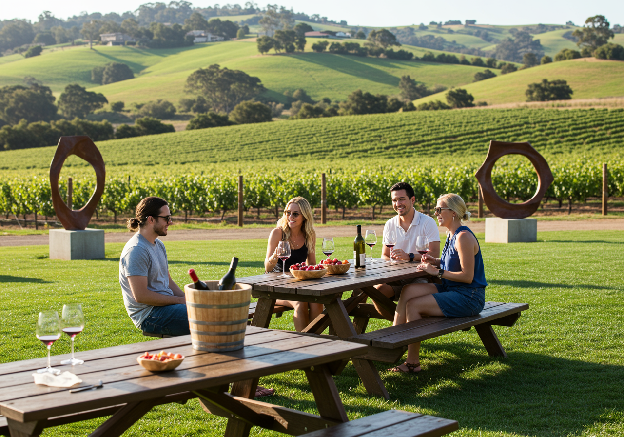 Every winery had something special. Sculpterra had fine wines and beautiful animal sculptures. The host was very knowledgeable and told us about the history of the winery, the wines, and the people who worked there. There were a few outdoor wine-tasting spots and a very relaxing picnic area. Then we went to Cass Winery, where we tasted more wine and tried different sausages. They had a very nice menu and an outdoor pizza oven, but we were not ready for food yet, so appetizers were enough.